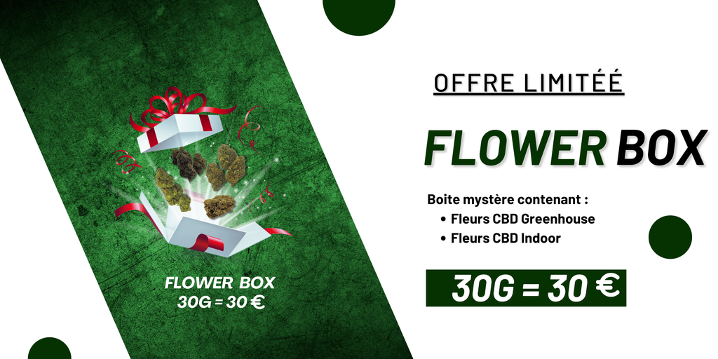 Venez découvrir notre FLOWER Box ! 30G = 30€. Cette box contient des fleurs de CBD Greenhouse et Indoor.